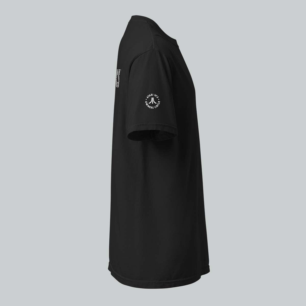 Perfect everyday black tee. Features the Atari VCS logo on the back and an Owners Circle emblem on the sleeve.