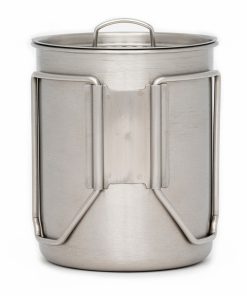 The Brew Kit Combo is truly a multipurpose piece of kit. Not only is it a cup for drinking, it’s also cookpot, measuring cup, and coffee maker, medicinal prep, or a means to gather and melt snow or disinfect water. The cup handles have a heavy gauge and large grip opening to allow for a gloved hand to easily grip the handles.