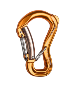 Unique shape carabiner with Twin-Gate wire-gate and Captive systems. Light and compact.