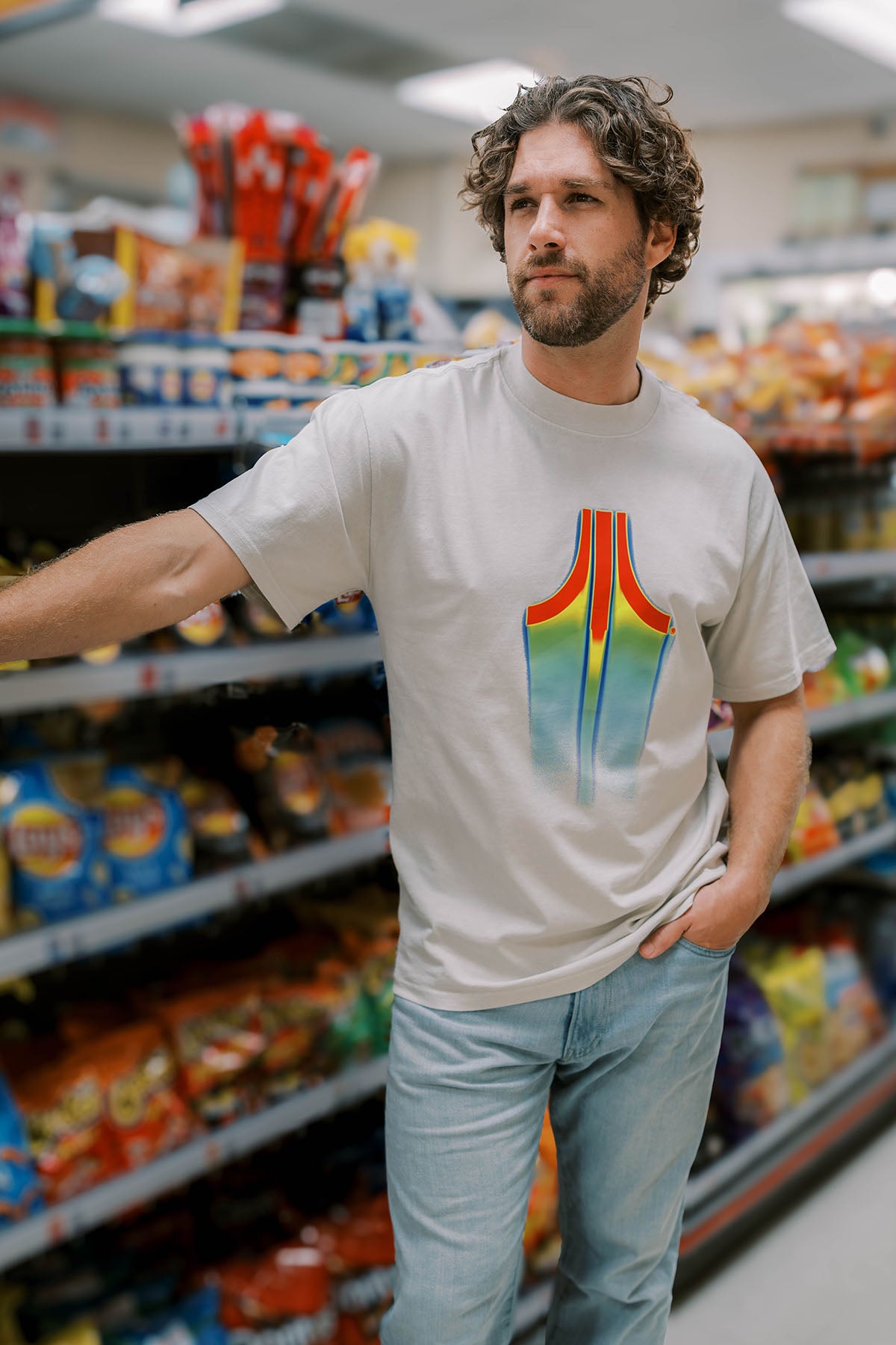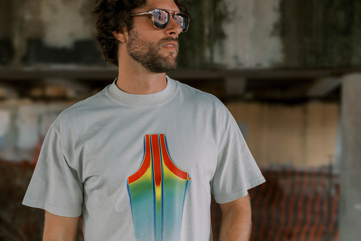An oversized dayglow rainbow Fuji tee, perfect for an outdoor festival or indoor LAN party. Made from 100% cotton, preshrunk to minimize shrinkage; comes in black or bone.
