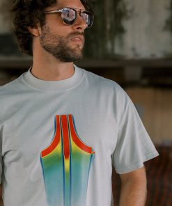 An oversized dayglow rainbow Fuji tee, perfect for an outdoor festival or indoor LAN party. Made from 100% cotton, preshrunk to minimize shrinkage; comes in black or bone.