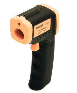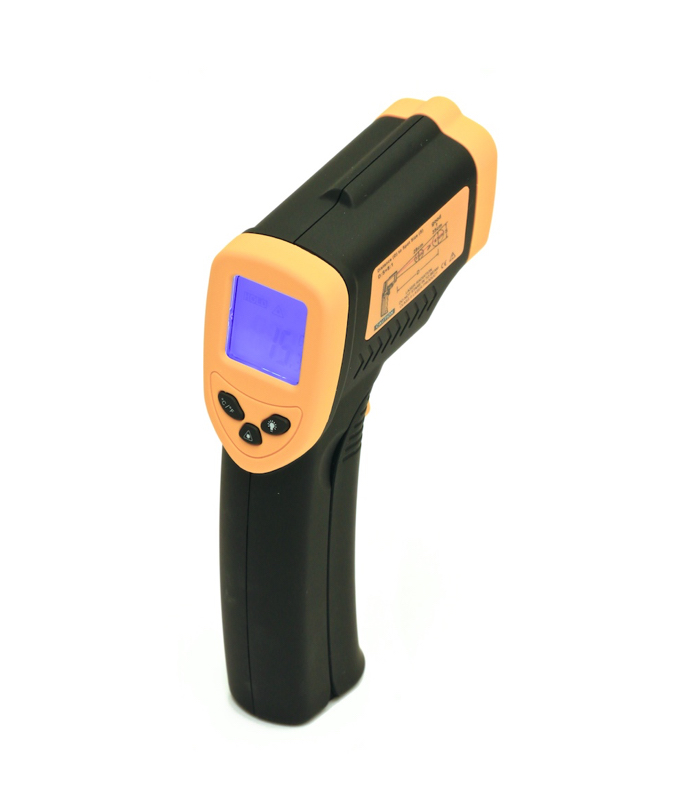 A non-contact infrared thermometer is an essential tool for post-build checks and testing; how else can you safely check the working temperature of your motors, ESCs and batteries etc? All electrical components have a typical and maximum operating temperature. HP-LEDS are expected to get warm (+100°C) when lit, but get too hot and they will dim or even fail. Note that +50°C is roughly the threshold of heat pain to your flesh… so testing if a part is too hot by merely touching it (I don’t recommend touching any powered circuit) is not a quantitative analysis to be relied on. This IR non-contact thermometer is easy to operate. Simply point to an object and read its temperature. The laser sight allows accurate targeting. Since an infrared thermometer measures surface temperature, accurate results are obtained only when the target is directly visible.