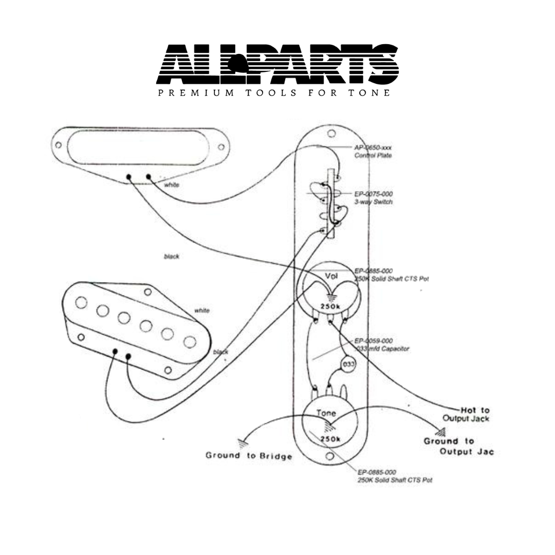 Wiring kit for Telecaster ® and similar style guitars. Includes the following components: