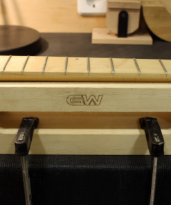 Securely holding a neck in place to be left clamped over-night, this handy neck support caul makes clamping the frets much easier.