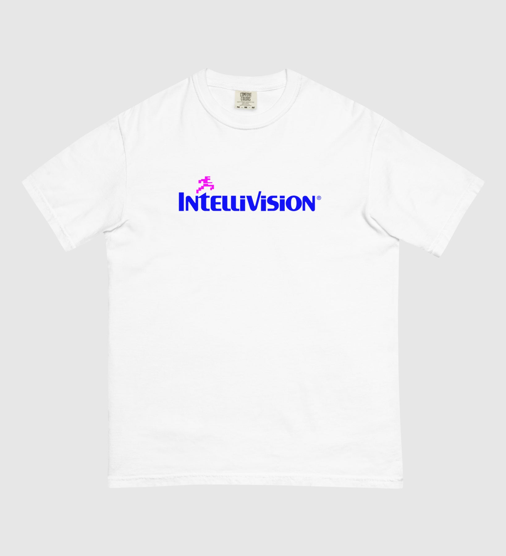 The spirit of Intellivision, the running man graphic features in the Intellivision logo and was customized for different game releases. On white or black premium, heavyweight cotton that offers a structured yet comfortable fit.