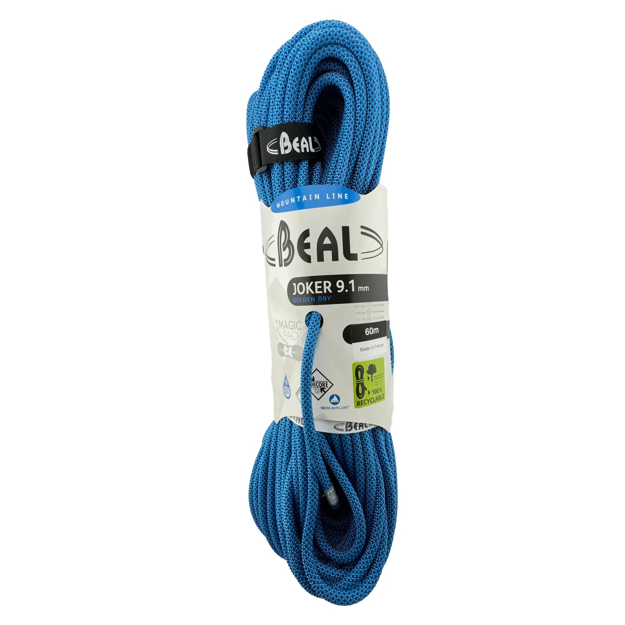 The Beal Joker 9.1mm UNICORE is the ultimate rope that conforms to all three dynamic rope standards; single, half, twin. The Joker is loved by the most extreme climbers that seek light and easy running lines. The more avid traditional climbers will hold tightly to the Joker for its multipurpose abilities on ridge and face routes, as well as mixed ice and snow.