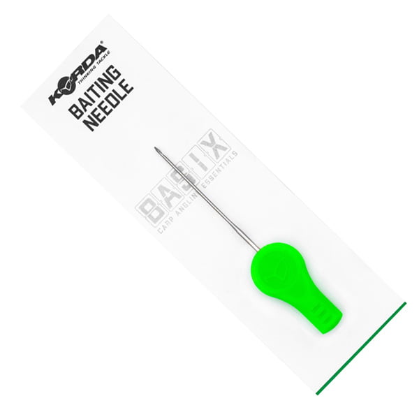 the end has been designed to hold the hair in place whilst the bait is threaded onto it, off of the needle, but without danger of it fraying braided materials or causing them to separate, which can make it hard to insert a hair stop. The bright green handle has been ergonomically designed, and should you drop it on the ground makes it easier to find. The chrome plated needle has been designed to last and won’t rust.
