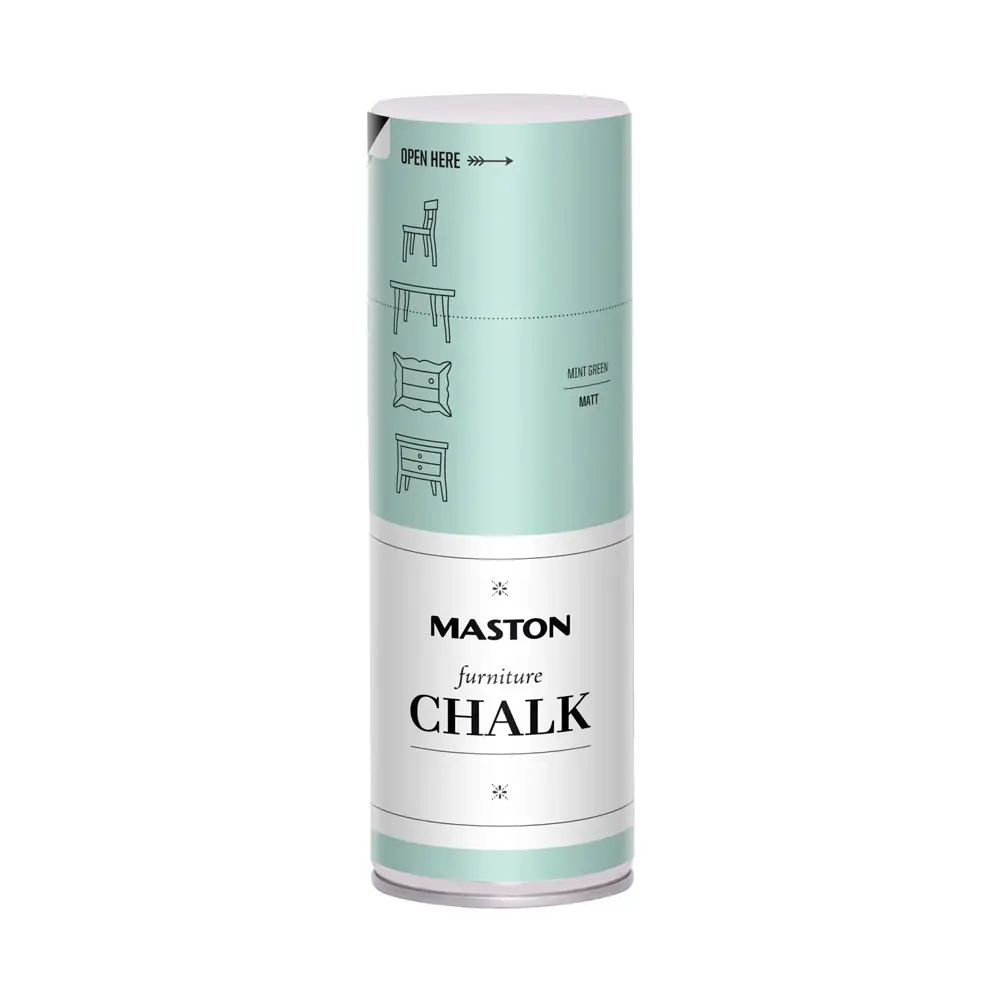Maston Furniture Chalk is an odourless and safe to use water-based spray paint for indoor use. Contains plenty of real chalk and loves wooden surfaces giving them a silky smooth and ultra matt finish. Dries fast and is sandable in 2 – 3 hours. Only one layer is needed to obtain full coverage.