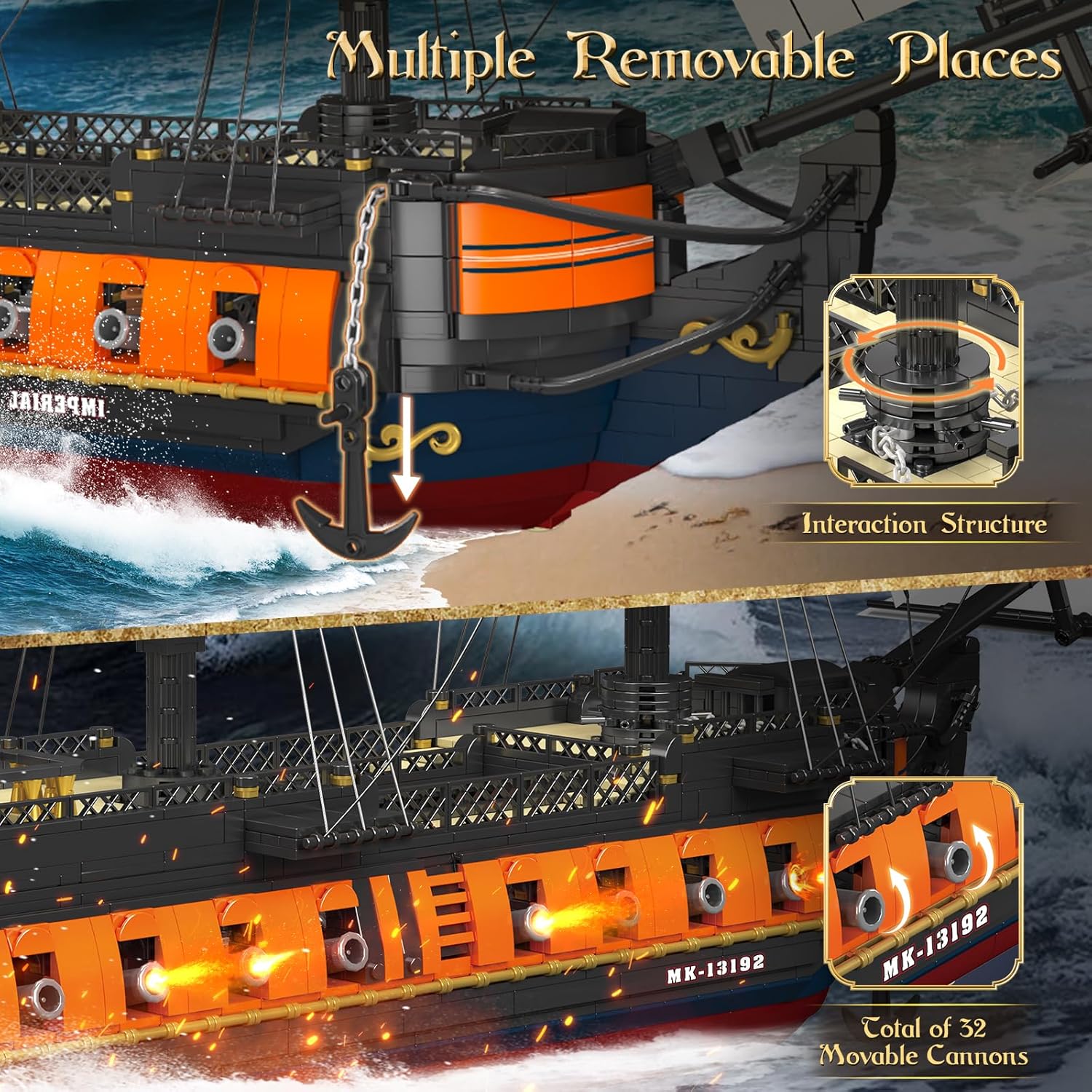 - 【Mould King 13192】Pirate ship is assembled from 3580 building block parts and comes with colorful paper instructions to make it easier for you to assemble.