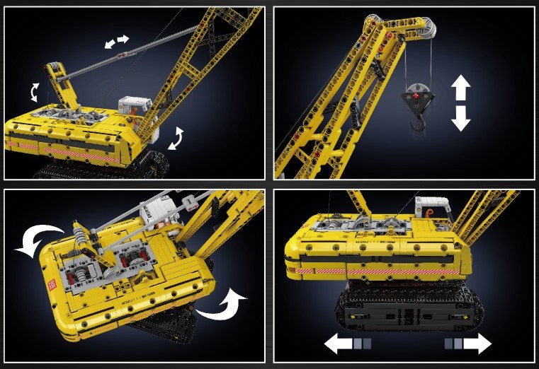 Standing at over half a meter tall, this Crawler Crane is packed with electric motor powering a multitude of remote controlled functions. Drive the crane in all directions, rotate the superstructure, tilt/extend the boom and raise/lower the hook all from your remote control.
