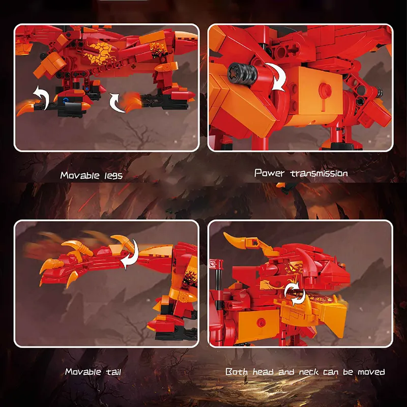 Mould King Flame Battle Dragon Building Bricks Model 485pcs Remote 13148