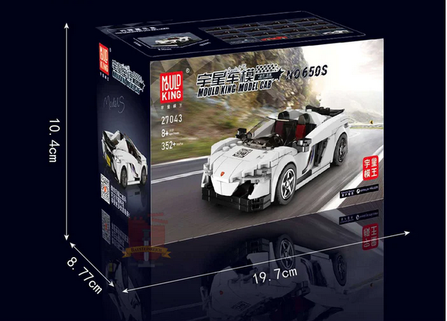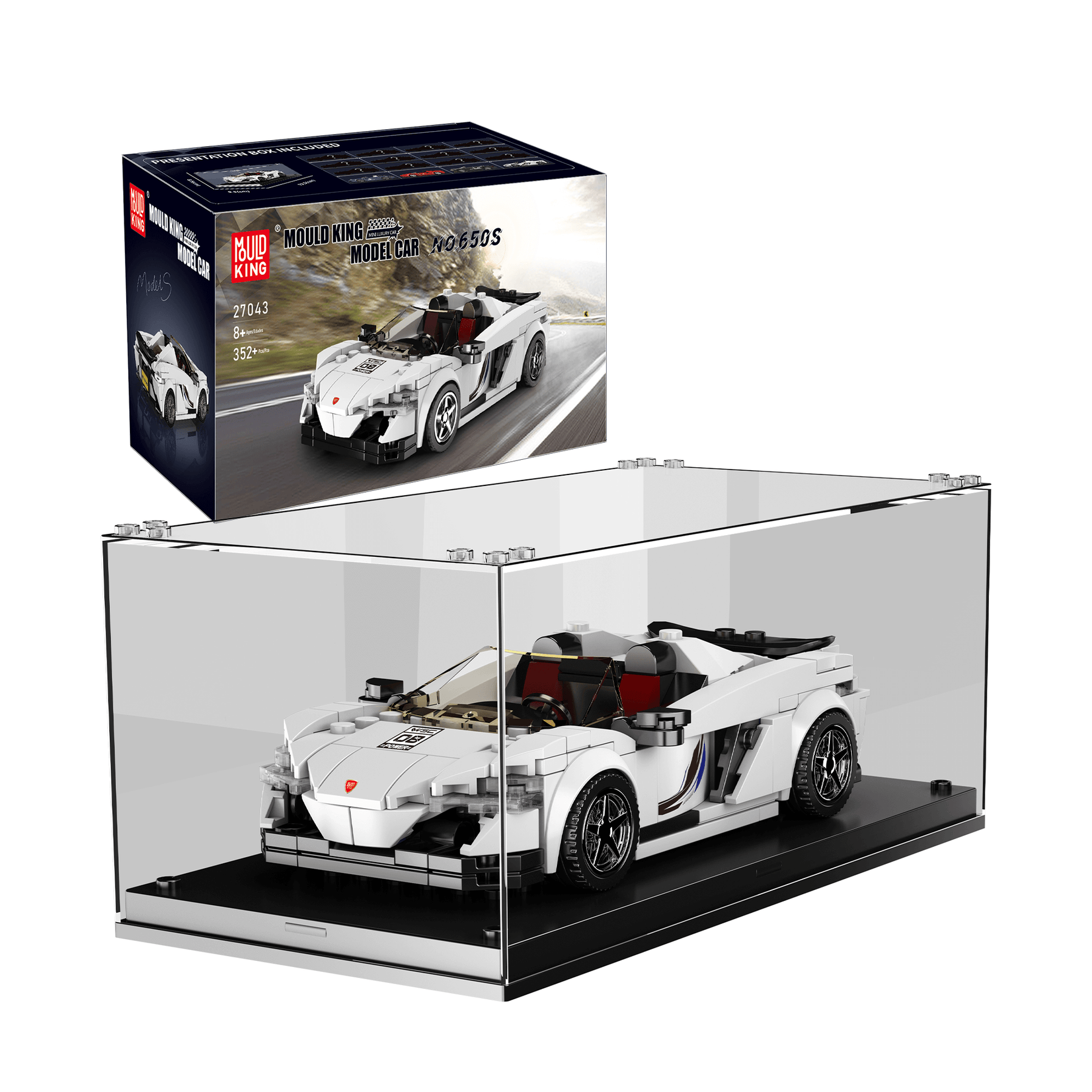 This Mould King® car model is created with 352 pieces and suit for ages 8 and up. The car model features a streamlined body and transparent windshield, exhaust-pipe, tail wing, opening doors, a steering wheel, and sport seats.