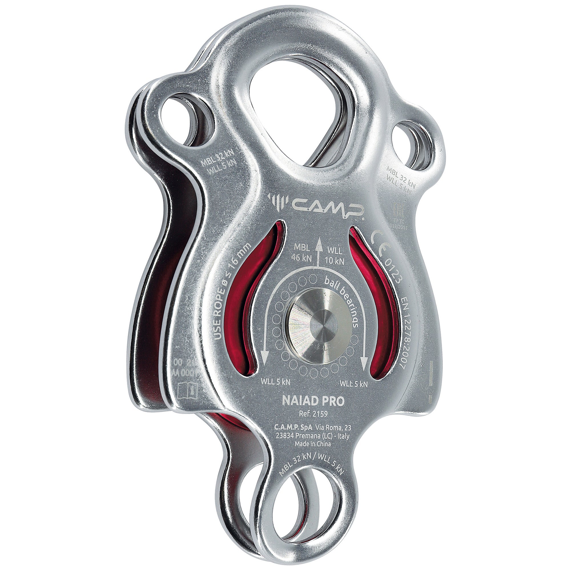 features sealed ball bearings for higher efficiency and intensive use at higher speeds. Prusik knots can be installed on either side (aramid cord suggested).