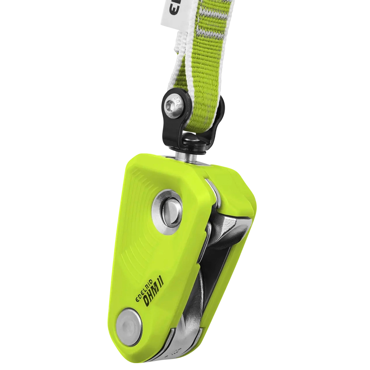 The second generation of our innovative and successful OHM is easier to use than ever thanks to a number of updates. The assisted-braking resistor for increasing the braking effect when climbing in rope teams with major weight differences has a swivel joint that improves the device’s freedom of movement. As a result, the clipping direction no longer matters when the device is clipped to the first bolt. The locking system prevents the device from opening accidentally and makes it far easier to insert the rope and remove the device when lowering.