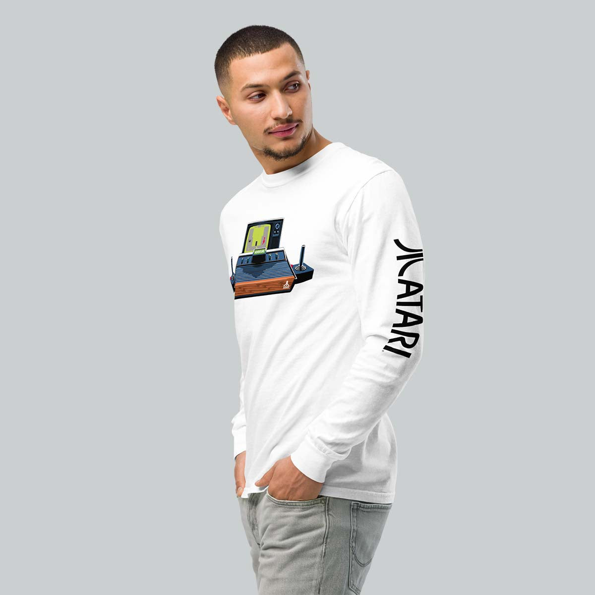 Adventure like it was … on a CRT connected to 2600 console, joysticks at the ready. Now on a long-sleeved tee with printing on both arms