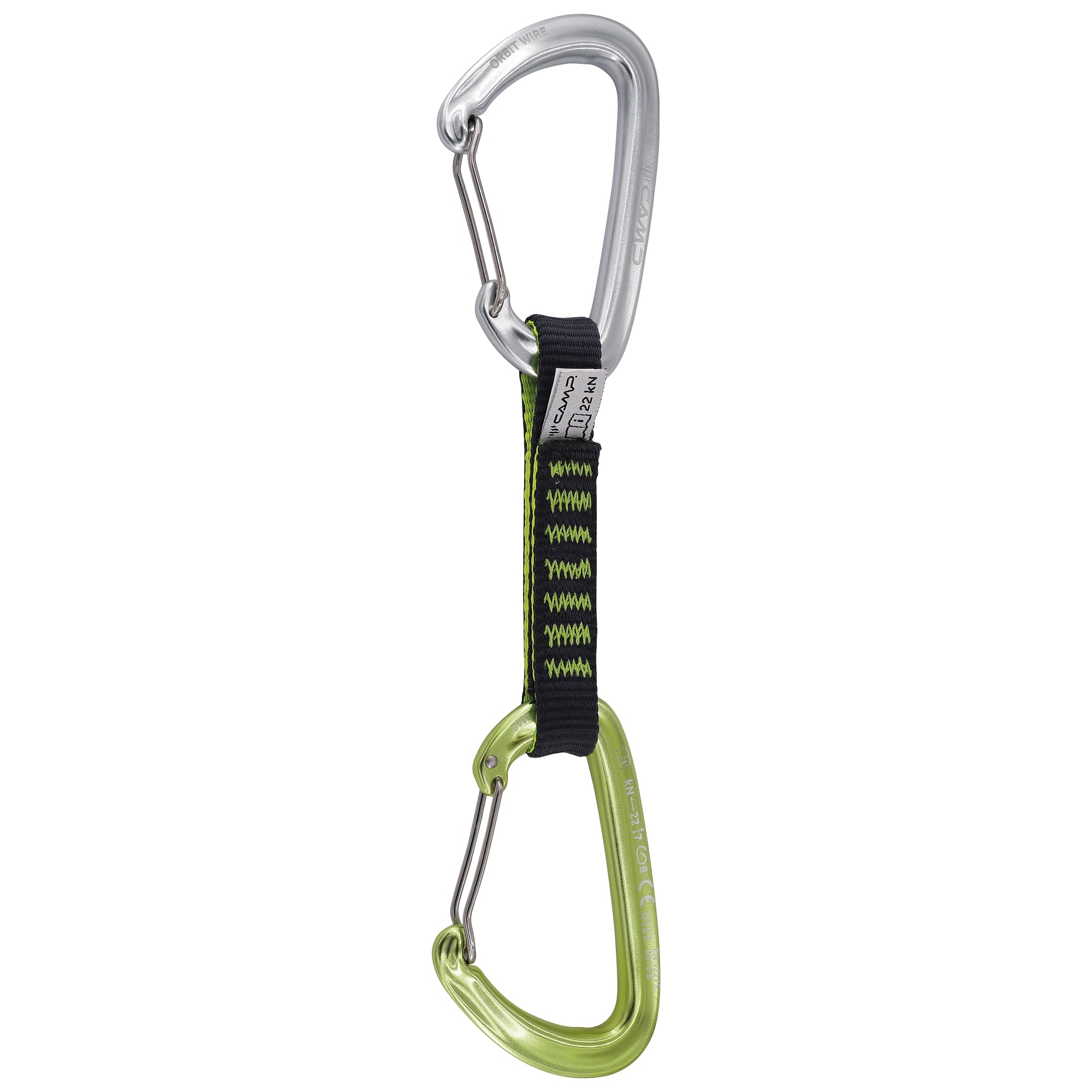 The Orbit Wire Express is a perfect choice for all-around climbing. The Orbit Wire carabiner features great durability, smooth clipping action and the lightweight engineering that C.A.M.P. is especially well known for. 16 mm Nylon dogbones feature the Karstop Evo carabiner retainer on the rope end. Available in 12 and 18 cm lengths.