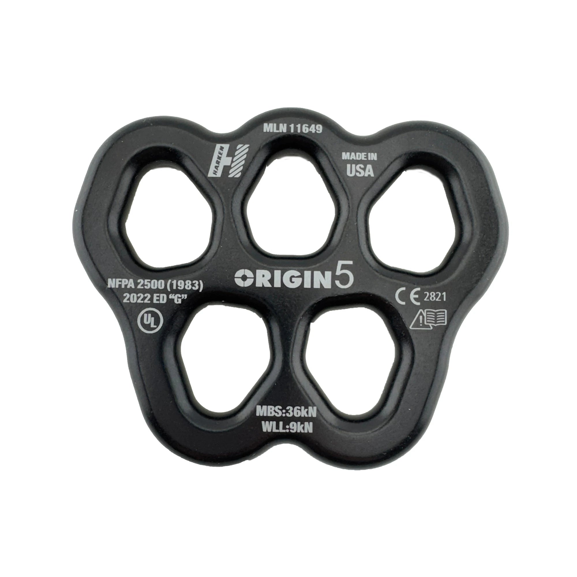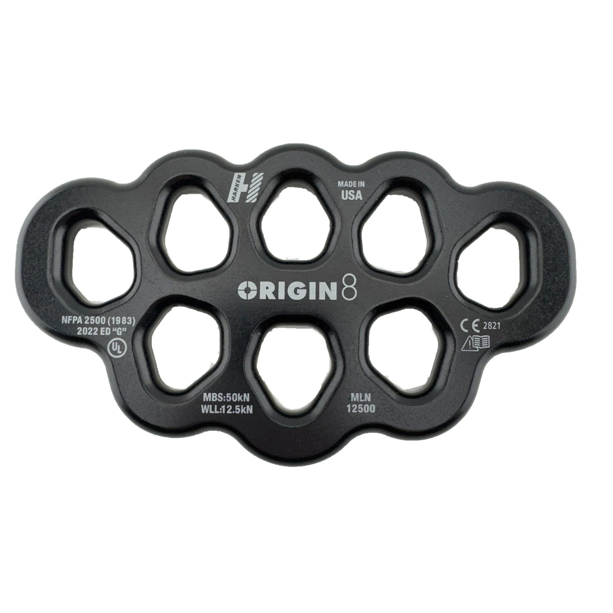The Origin rigging plates are designed to organize even the most complex rigging systems. Most conventional locking carabiners can rotate through the larger holes and the custom machined edges are smooth and textile-friendly. The smaller 5 hole plate has an MBS of 30 kN and the larger 8 hole plate has an MBS of 50 kN to ensure that they can handle any situation.