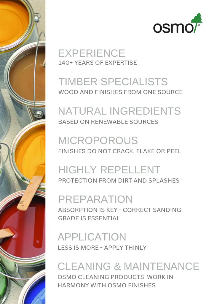 Wood and colour from one source. You can rely on wood and finishes from Osmo thanks to in-depth expertise in both areas. They know what it comes down to in terms of wood products and finishes so you can benefit from over 100 years of our experience.