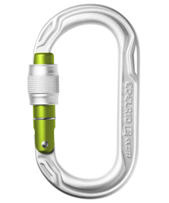 Oval carabiner with a very slim locking sleeve. Ideal for clipping rigging plates, pulleys, and rope clamps, as well as for positioning anchor points.