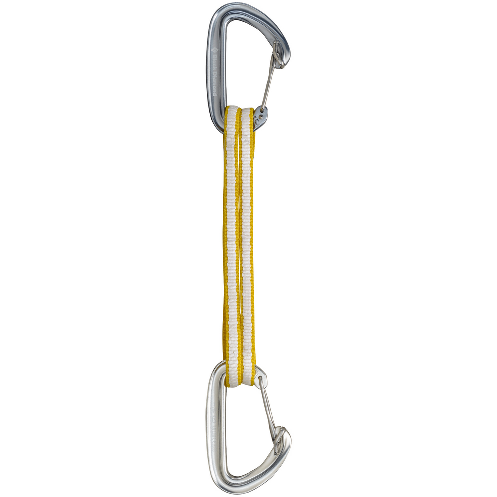 Versatile, essential protection for ice, alpine and trad routes, the Black Diamond Oz Alpine Quickdraw is a multi-functional biner-and-runner combo that is usable either in standard quickdraw configuration or fully extended. The two lightweight Oz carabiners feature HoodWire Technology, which employs a simple wire hood on the nose to eliminate snagging on bolt hangers and slings. The 60 cm Dynex runner is light, abrasion-resistant and absorbs less water than nylon, making it ideal for alpine environments.
