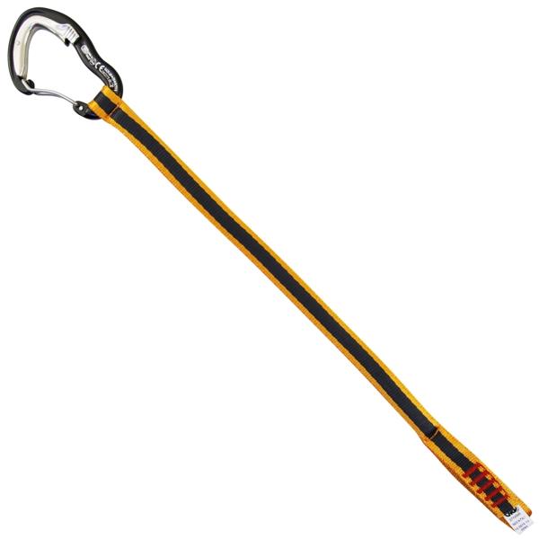 Self-closing carabiner with semi-rigid webbing: an aid to reach the most distant bolts!