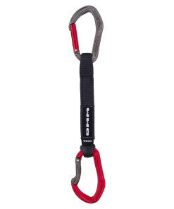 Self-closing carabiner with semi-rigid webbing: an aid to reach the most distant bolts!