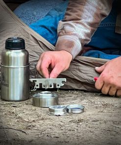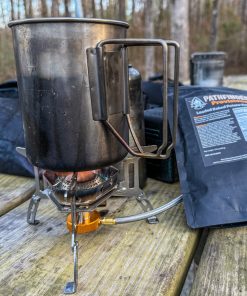 The Pathfinder French Press is a bushcrafter’s dream. It holds up to 48 ounces so you can make plenty of coffee for yourself and your family or friends. You can also use it as a stand-alone kit to pack light without sacrificing great coffee.