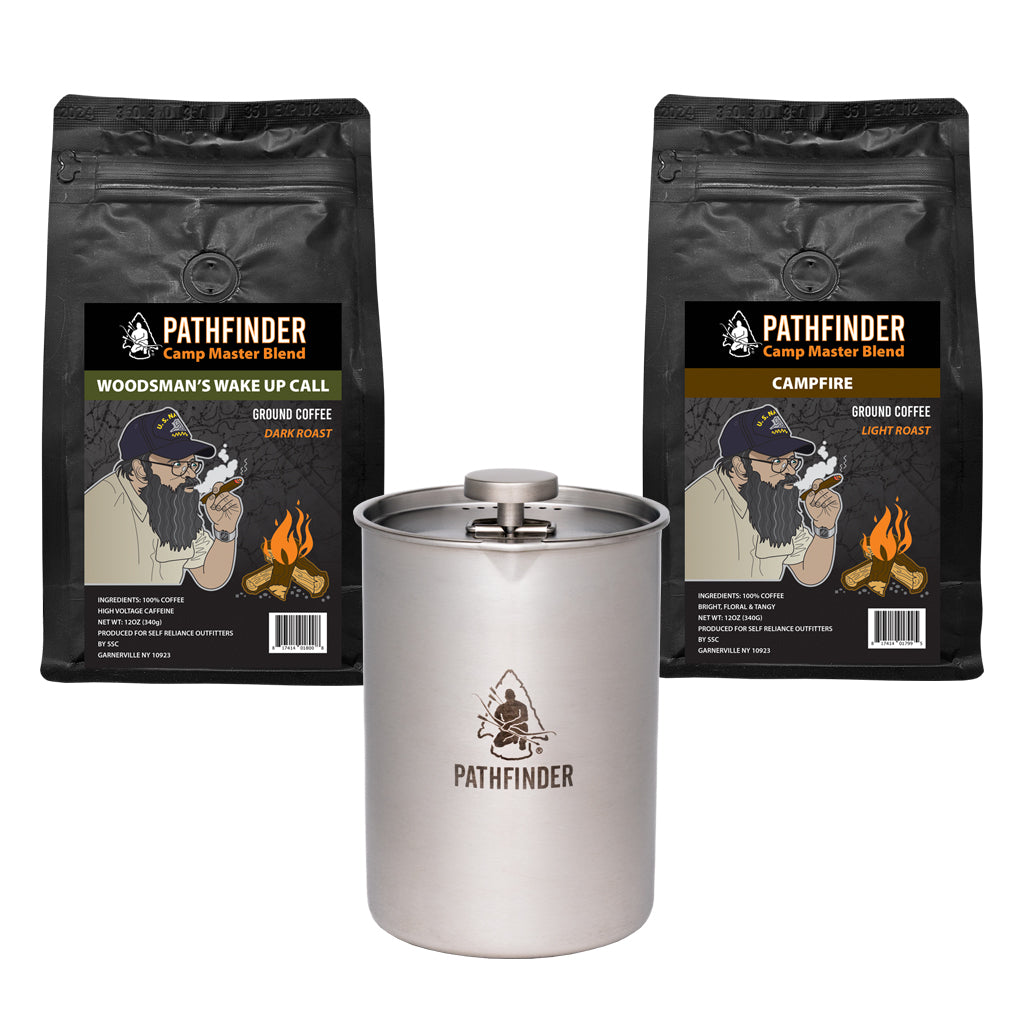 Brewing a smooth, rich cup of French press coffee is easy when you have your Pathfinder camping travel press coffee kit.