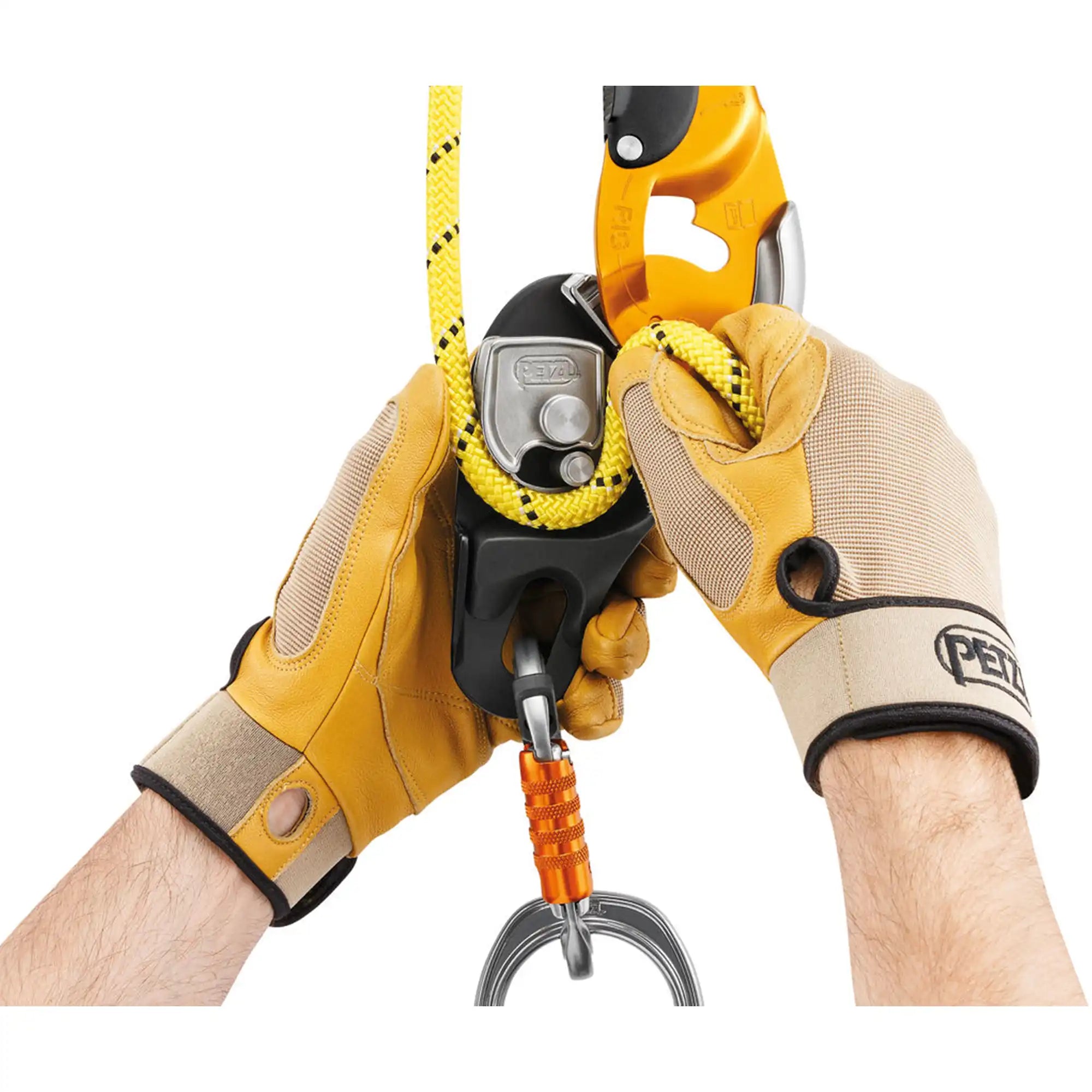 – AUTO-LOCK system allows users to easily position themselves at the work station without having to manipulate the handle or tie off the device: as soon as the user releases the handle, the rope is automatically locked in the device. The automatic return system on the handle limits the risk of the device getting accidentally snagged