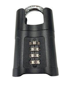 A heavy duty padlock produced with a tough zinc alloy body and hardened steel shackle and shroud for added security. A 4 digit combination so you never have to worry about losing a key. A shroud protects from tampering.