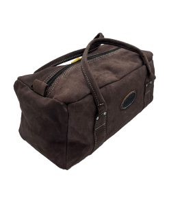 Manufactured from durable high quality split leather, double-stitched and riveted for added strength. With zip fastening. Carry handles are riveted and double stitched with supporting leather fully under the bag so the weight is carried through the handles- this makes it more comfortable and less stress on the handle joint. Dimensions 450 x 200 x 175mm
