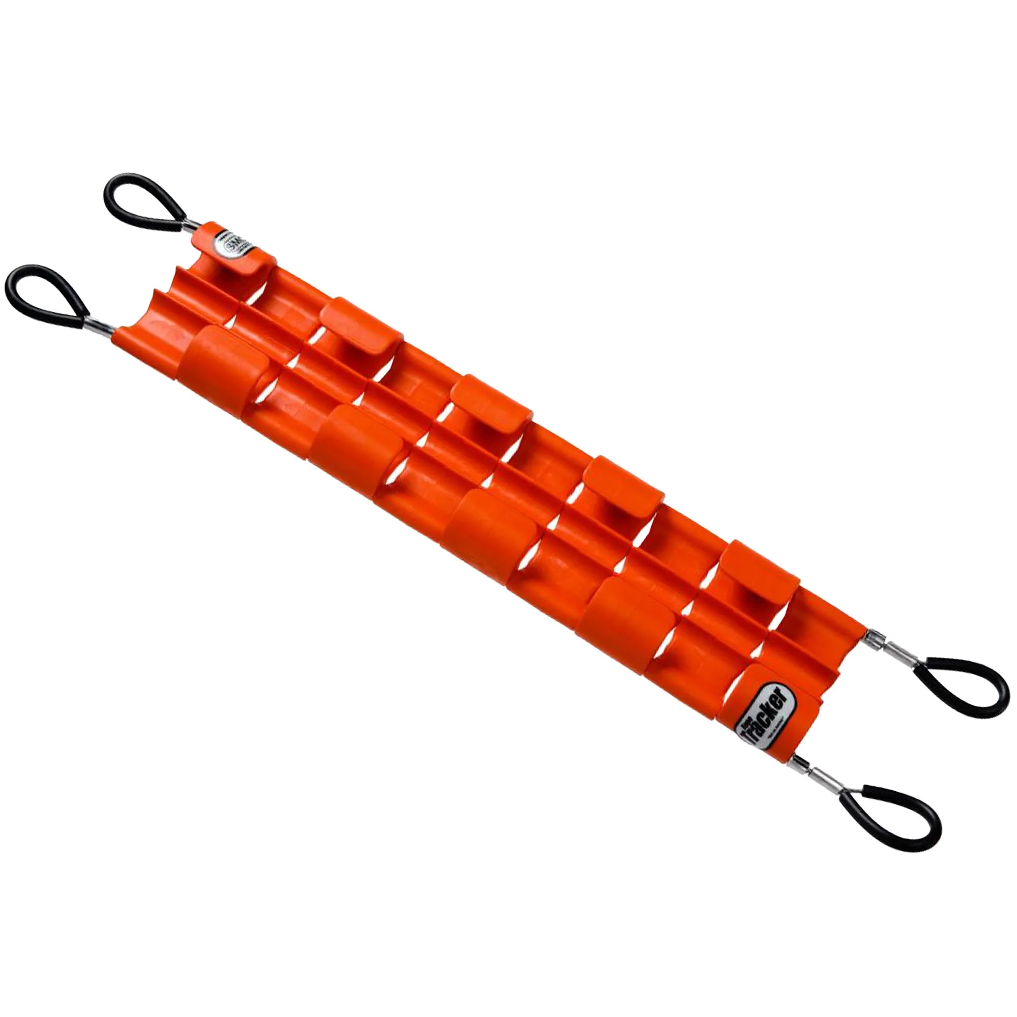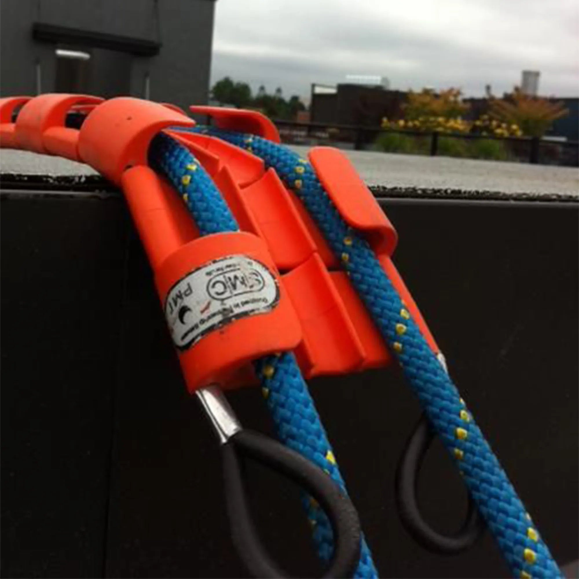 The Rope Tracker is made from a high quality thermoplastic blend to yield high strength and durability while reducing weight. The abrasion resistant plastic is also colored bright orange for increased visibility. The Rope Tracker can articulate up to 90 degrees and protect ropes up to 12.5 mm in diameter with its guarded channels.