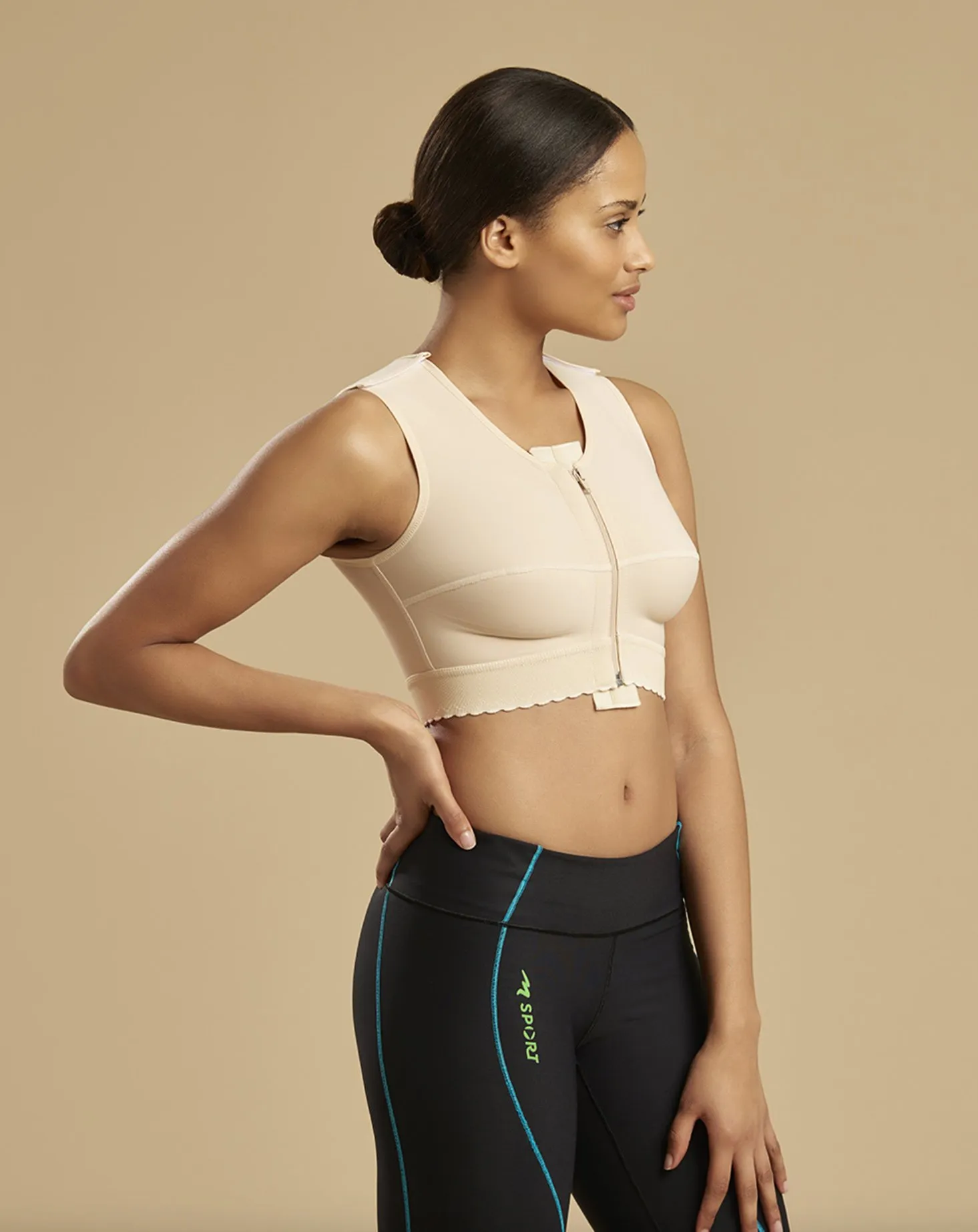 Our Sleeveless Compression Vest with Zipper features the same design as FVNS with zipper front closure. fits A-C cups.