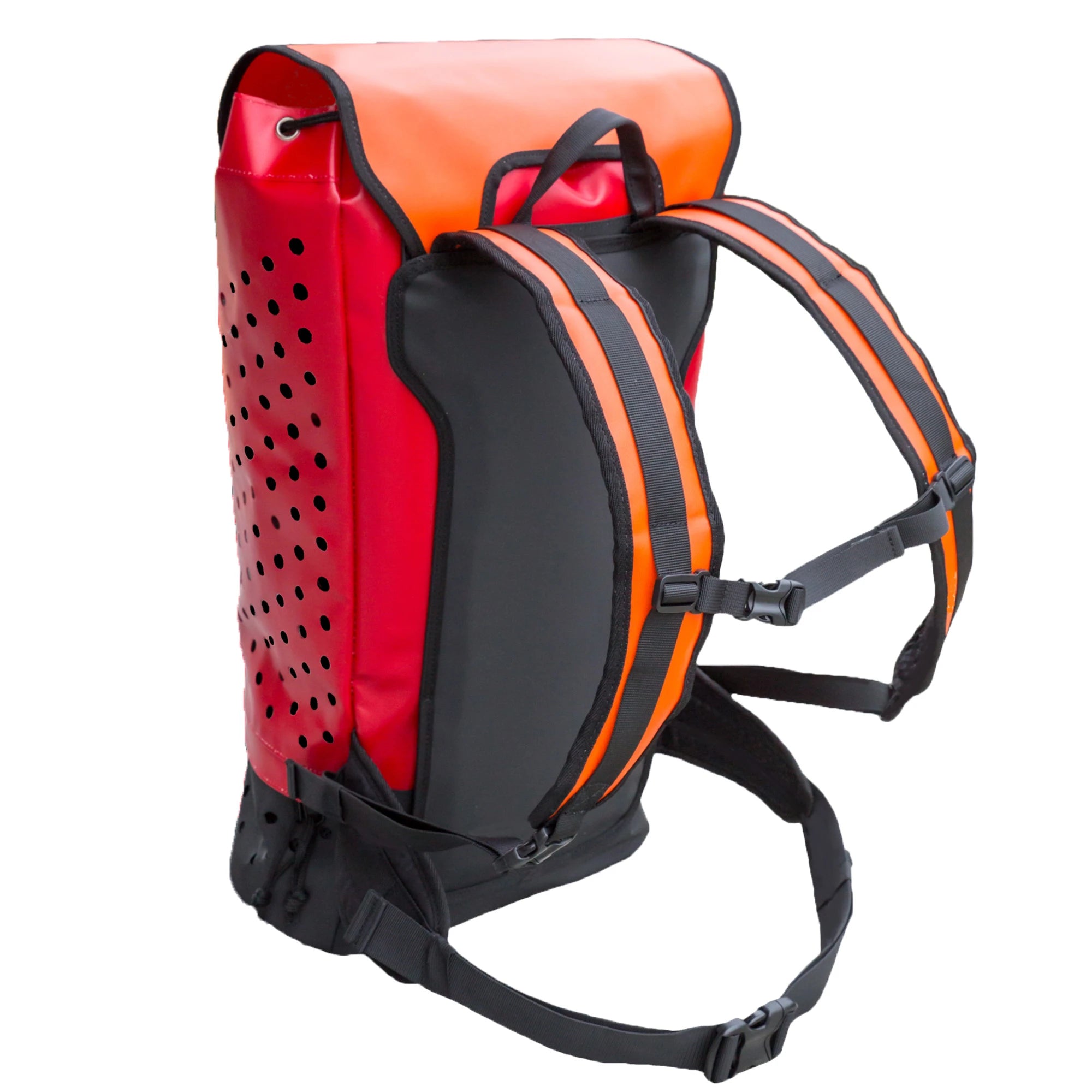A welded bottom made of TPU-TPX3D material makes this backpack ultra-durable, long lasting and abrasion resistant. Generous and numerous drainage holes allow water to run off very quickly.