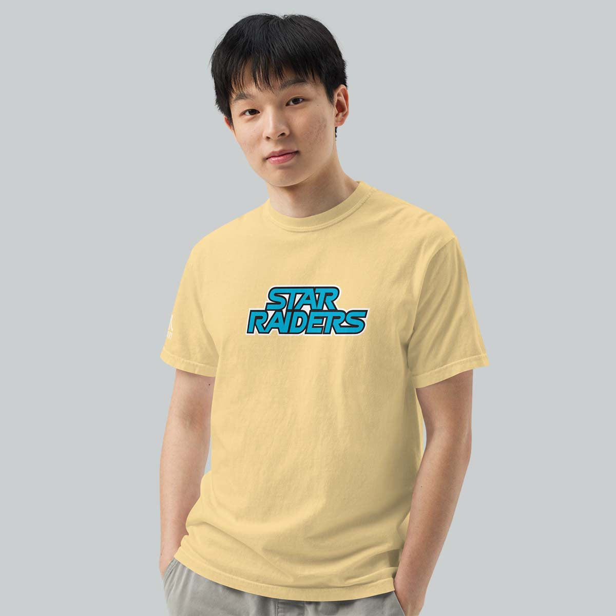 Join the Atarian Federation in this comfy, butter yellow tee to celebrate the hit game’s 45th anniversary. Large Star Raiders logo on the front, and custom spaceship art on the back.