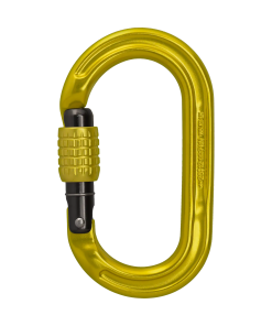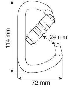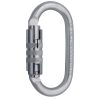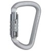 Super strong steel D-shaped carabiner features a triple-action auto-locking gate that can be operated with one hand and a keylock nose to reduce snagging.