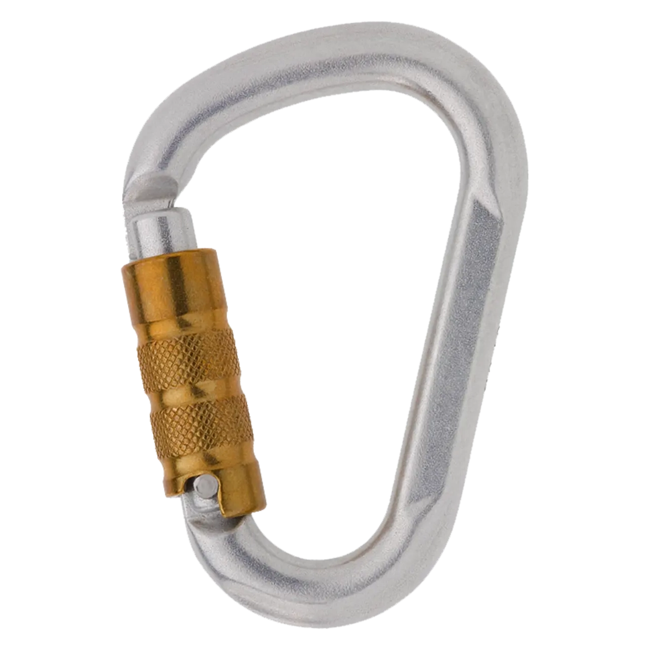 Robust, pear-shaped, steel carabiner with a keylock closure and brass sleeve for increased gate strength.