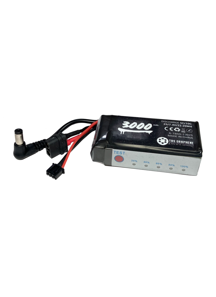 The TBS Graphene packs for FPV goggles are here! With a 3000mah capacity, this lipo will guarantee you maximum flight time before the beeps come on! Equipped with XT60, DC, and a balance lead, charging is just as easy as charging your drone packs. Press and hold the TEST button to quickly quage your voltage so you will never grab the wrong one!