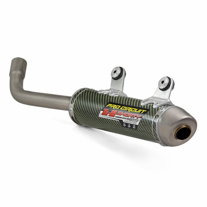 The Pro Circuit Ti-2 Shorty Carbon Kevlar/Titanium Silencer is the latest piece of racing technology offered and is guaranteed to be a favorite for most two-stroke riders.
