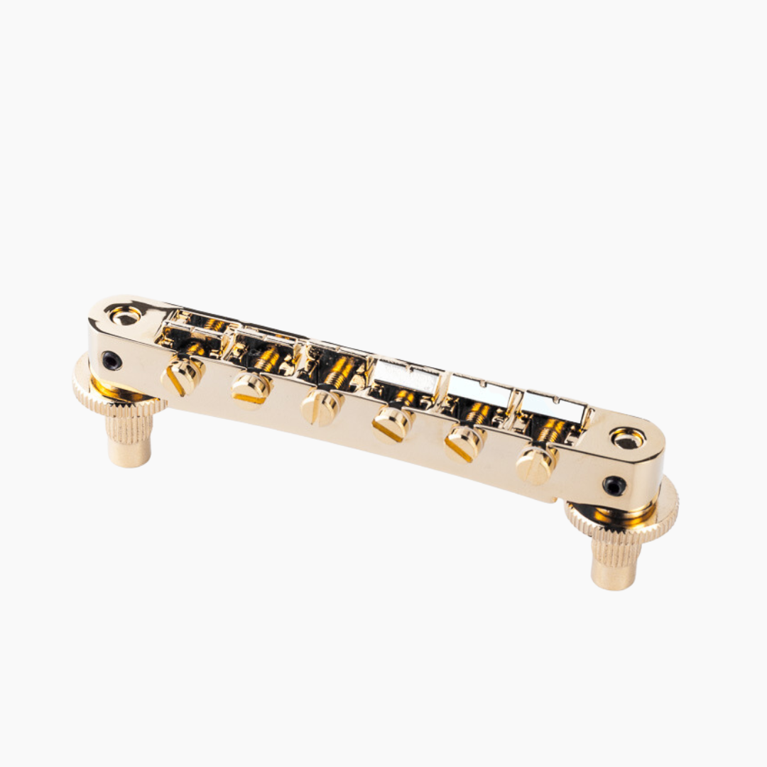 The TonePros Model NVR2P is an AVR2 style bridge engineered with vintage accuracy, modern technology, and compatibility in mind. This second generation AVR2 bridge is engineered to directly retrofit all Nashville style bridges, allowing for an easy transition to vintage feel and tone on modern instrument. It comes standard with Nashville style US thread posts and inserts, but is specially designed to also fit most AVR2 style posts and spacing. NVR2P maintains all of TonePros’ great locking technologies and quality consistency that TonePros components are famous for. The TonePros NVR2P comes with pre-notched saddles.