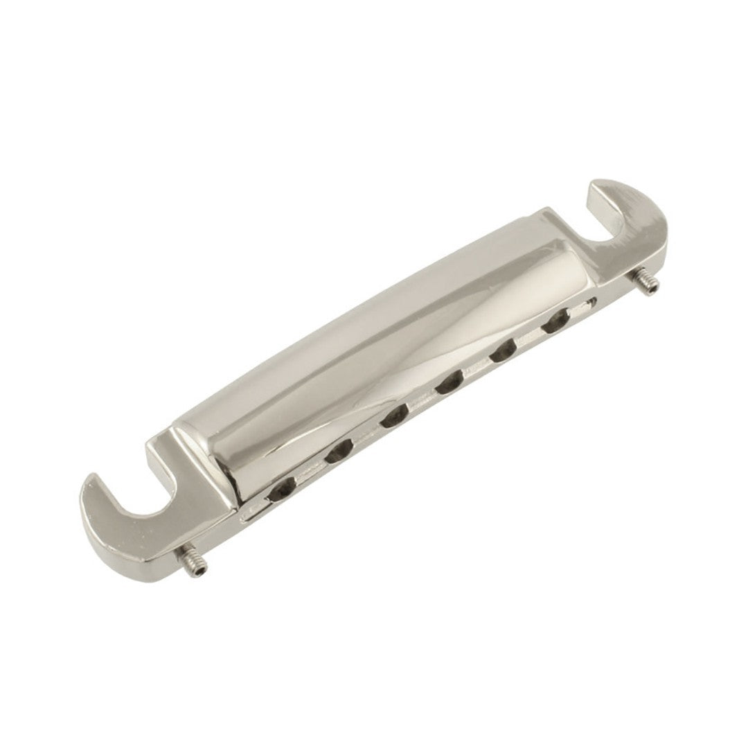 Wraparound stop tailpiece, with adjusting set screws, USA studs & anchors, Nickel, 3-1/4″ spacing.